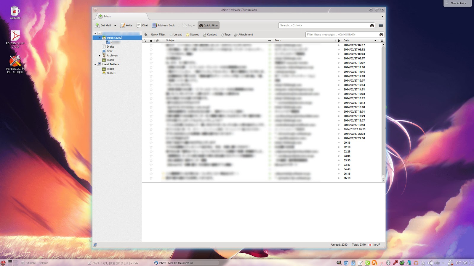 クロスプラットフォームのThunderbirdなら、OSが変わっても基本的な操作方法は同じなのでLinux、Windows、BSDと環境が変わってもあれこれと操作に迷うことは少ないです。